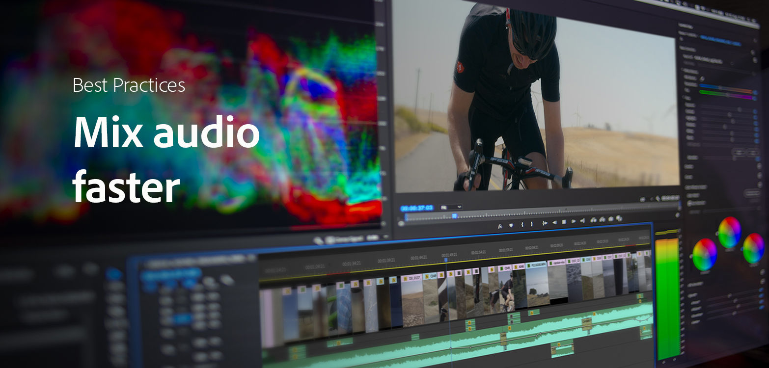 The Essential Sound panel in Premiere Pro greatly simplifies and accelerates audio mixing. Changes can be applied to multiple clips in a single step. In our tests we found that, compared with manual audio mixing, the Essential Sound tools you can give you professional results as much as 20x faster. Even better, adjustments adhere to broadcast delivery levels, so you can count on producing a mix that is not flagged or rejected during QC.