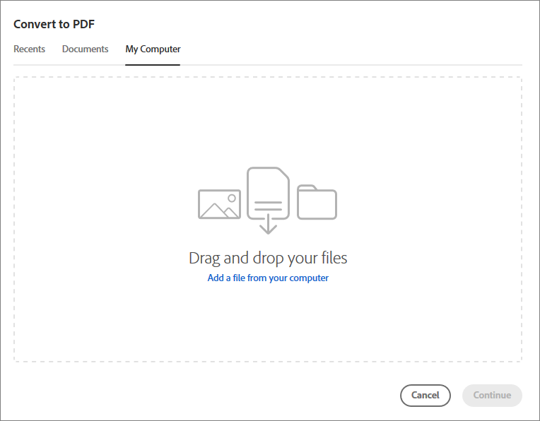 Den opplastede filen konverteres til en PDF-fil og lagres i Adobes skybaserte lagring.