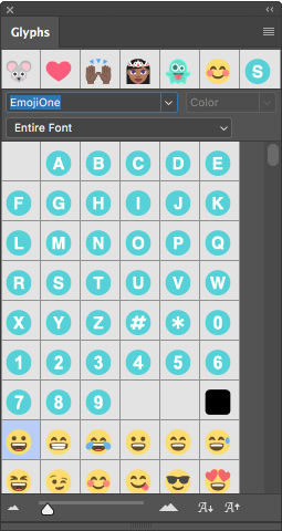 Photoshop supports OpenType SVG fonts and ships with the Trajan Color Concept and the EmojiOne font. OpenType SVG fonts provide multiple colors and gradients in a single glyph. On the Mac OS platform, the Apple Color Emoji font is supported to a limited extent, even though it is not an OpenType SVG font.