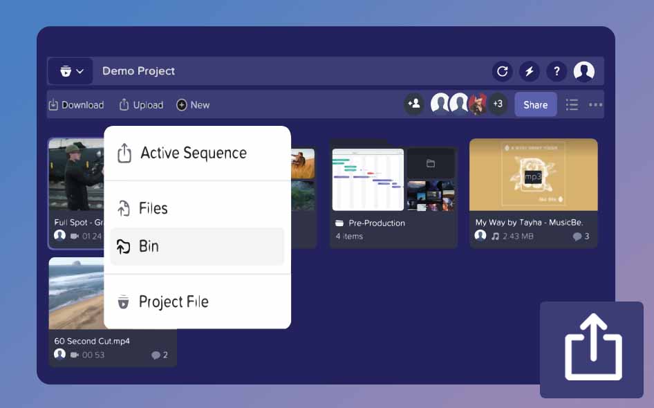 • Productions: Use bin locking so larger teams can work on different project files for the same shared feature. Get visibility into what others are doing without conflicts. Own your timeline or hand it off to your teammates when ready. Ideal for larger features.