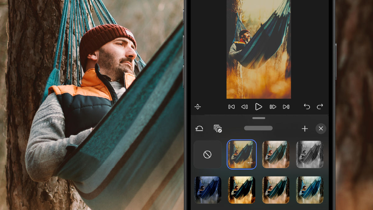 Make frame-accurate cuts, use unlimited tracks, and apply clip controls like reverse, unlink audio, and freeze frame—all directly from your phone.