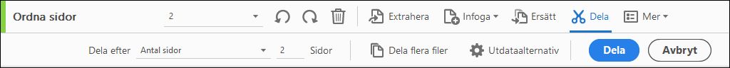 Verktygen för att ordna sidor visas i det sekundära verktygsfältet.