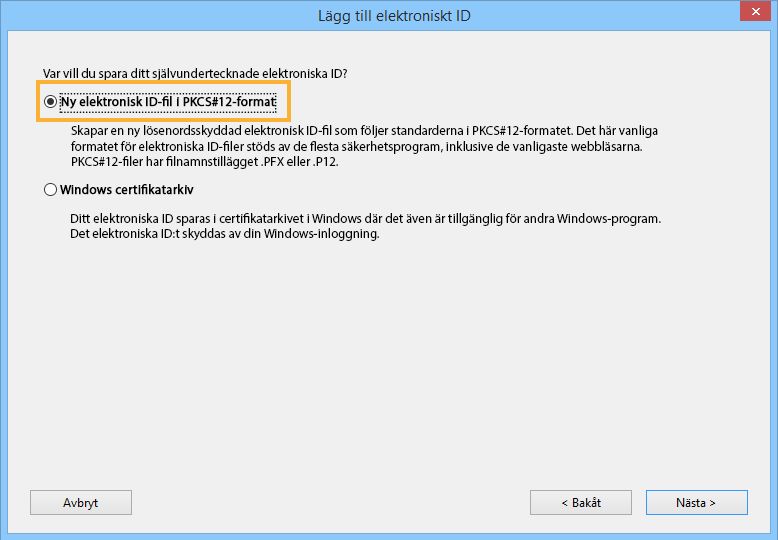 Välj alternativet Ett nytt digitalt ID som jag vill skapa och klicka på Nästa.