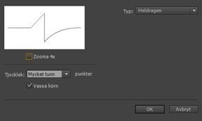 Ange procentvärden för minimal och maximal tryck- eller lutningskänslighet som motsvarar minimal och maximal linjebredd. Godtagbara värden är heltal inom intervallet 1 till 100.