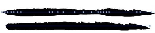 - Tänj ut mellan stödlinjer: Tänjer bara ut teckningen mellan stödlinjerna. Den inledande och avslutande delen av teckningen används på alla penseldrag utan att tänjas ut.