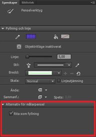 Alternativet Rita som fyllning i Målarpenselverktyget hjälper dig styra formen som skapas av målarpenseln att bli en linje eller att fylla ett område.