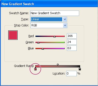 Även om du rekommenderas att använda färgrutepanelen när du skapar och lagrar övertoningar, kan du även arbeta med övertoningar från övertoningspanelen (Fönster > Färg > Övertoning), som du kanske känner till om du har använt Adobe Illustrator. Du kan när som helst lägga till den aktuella övertoningen på färgrutepanelen. Övertoningspanelen är praktisk när du vill skapa en namnlös övertoning som inte kommer att användas särskilt ofta.