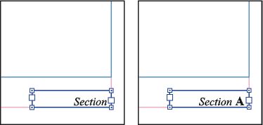 Du kan definiera avsnittsprefix om du vill att avsnittssidorna ska markeras automatiskt. Exempel: Om du anger A- för Avsnittsprefix på sidan 16 i ett dokument och sedan tar med avsnittsprefixet, visas sidan i innehållsförteckningen eller indexet som A-16. Text som du skriver för ett avsnittsmärke visas när du väljer Text > Infoga specialtecken > Märken > Avsnittsmärke.