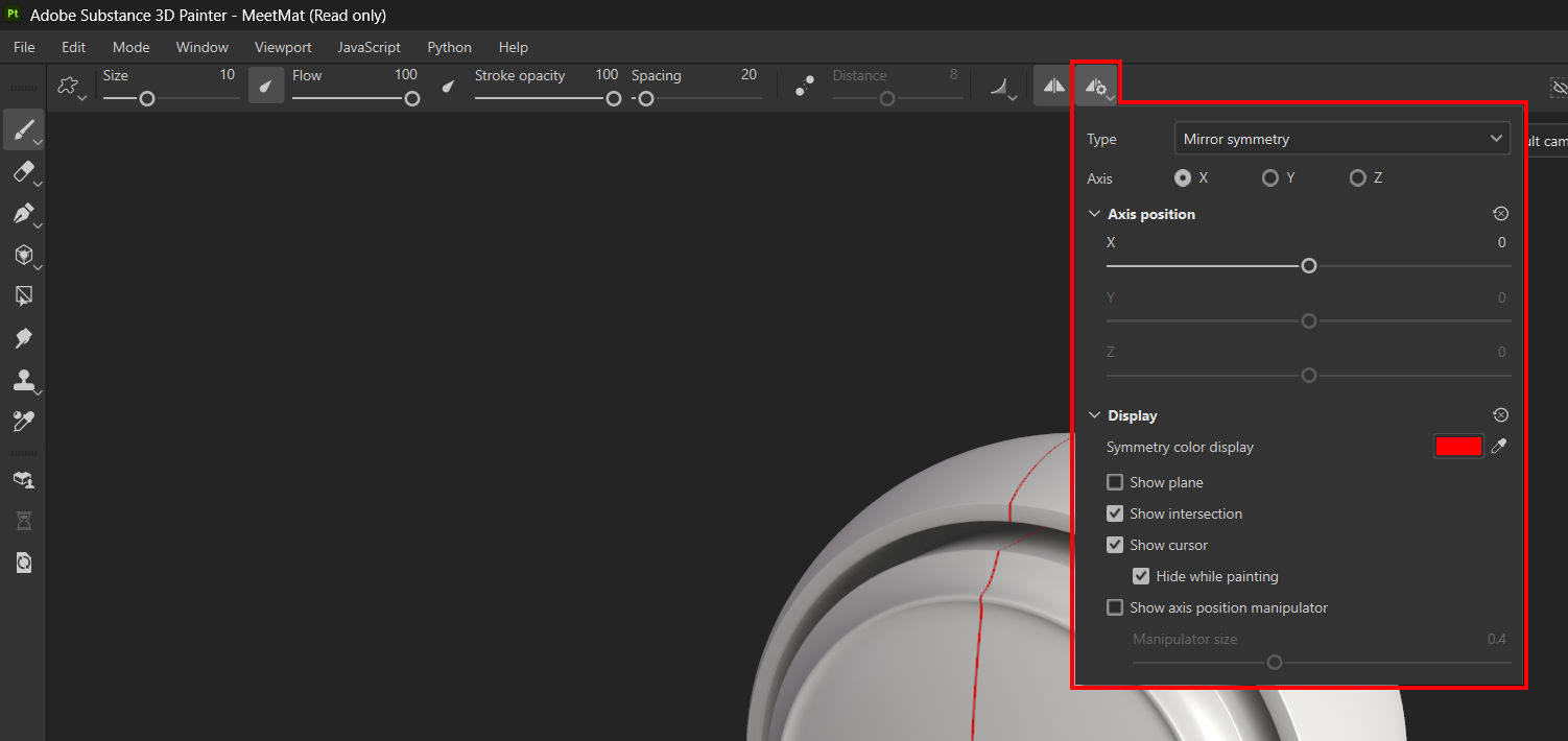 If an unsupported projection method is selected, the Enable symmetry option won't be available, and the Symmetry button in the contextual toolbar will be greyed out.