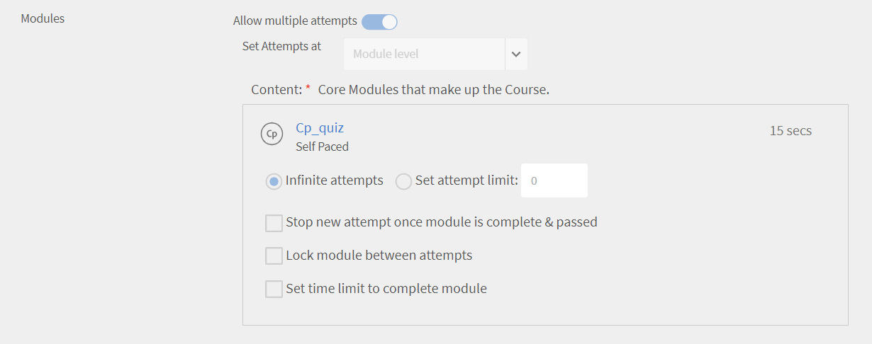 Adobe Learning Manager now allows you to configure multiple attempts for your interactive eLearning content. Previously learners could reset the progress; now it allows authors to: